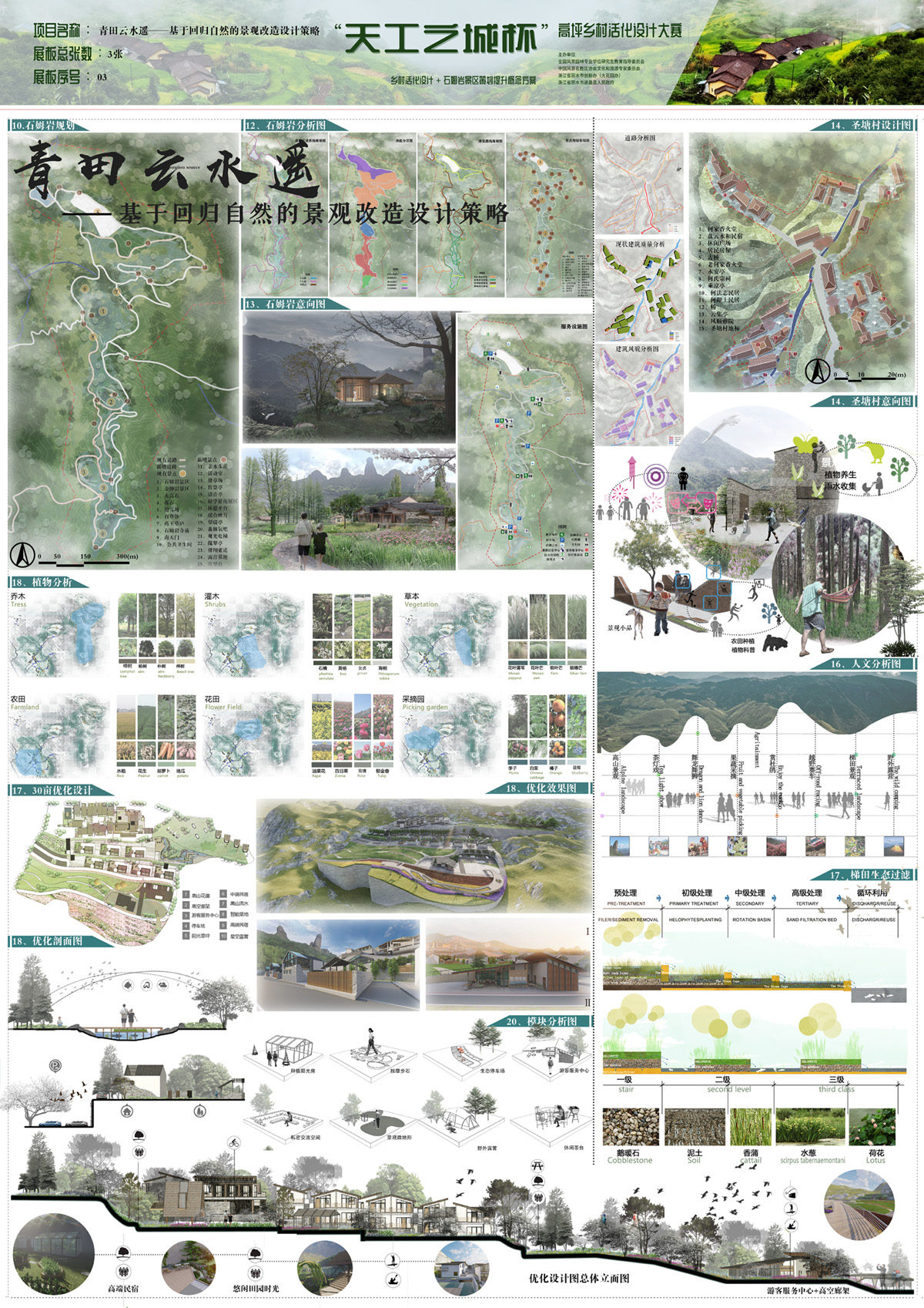 华体会(中国)参赛师生在2021年6月完成的初赛中,与来自浙江大学、天津大学、华南理工大学、华南农业大学、北京林业大学、东北林业大学、南京林业大学、浙江农林大学等高校的 15 支参赛队伍携手闯入决赛。2021年7月,应主办方邀请前往浙江遂昌县高坪乡进行了实地考察,在此基础上对规划设计方案进行了深化。2022年5月21日以线上答辩方式进行决赛。竞赛组委会评审专家团通过三轮投票,评选出金奖1项,银奖3项,铜奖5项。