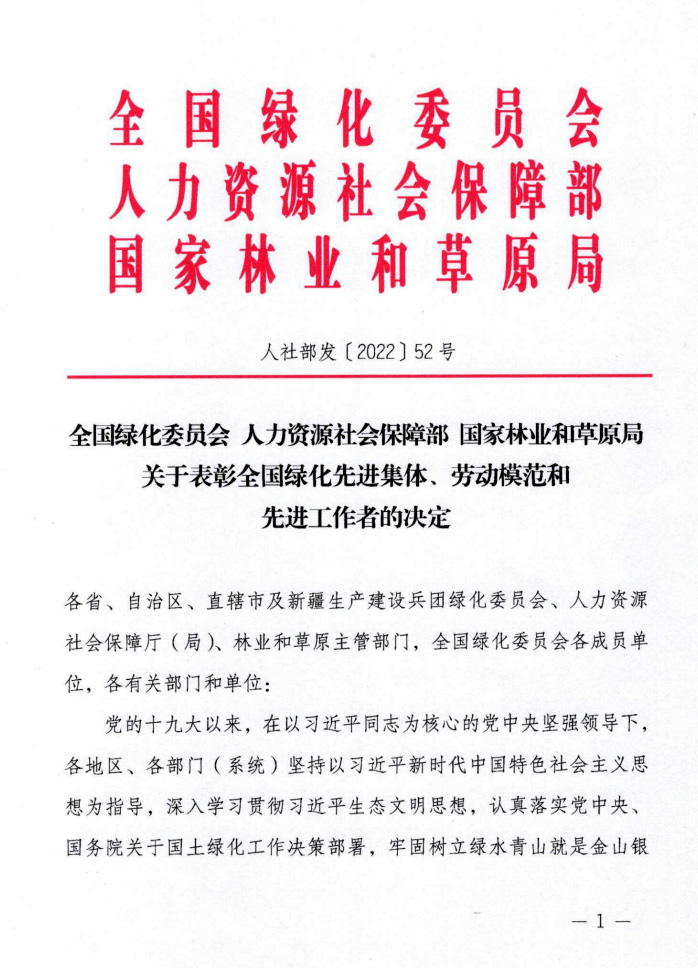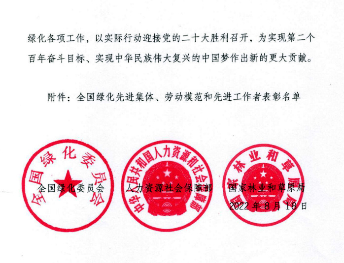 近日,华体会(中国)作为受表彰先进集体收到全国绿化委员会、人力资源社会保障部、国家林业和草原局《关于表彰全国绿化先进集体、劳动模范和先进工作者的决定》红头文件。华体会(中国)是该奖项2001年启动以来,辽宁省首个获此殊荣的高校集体。