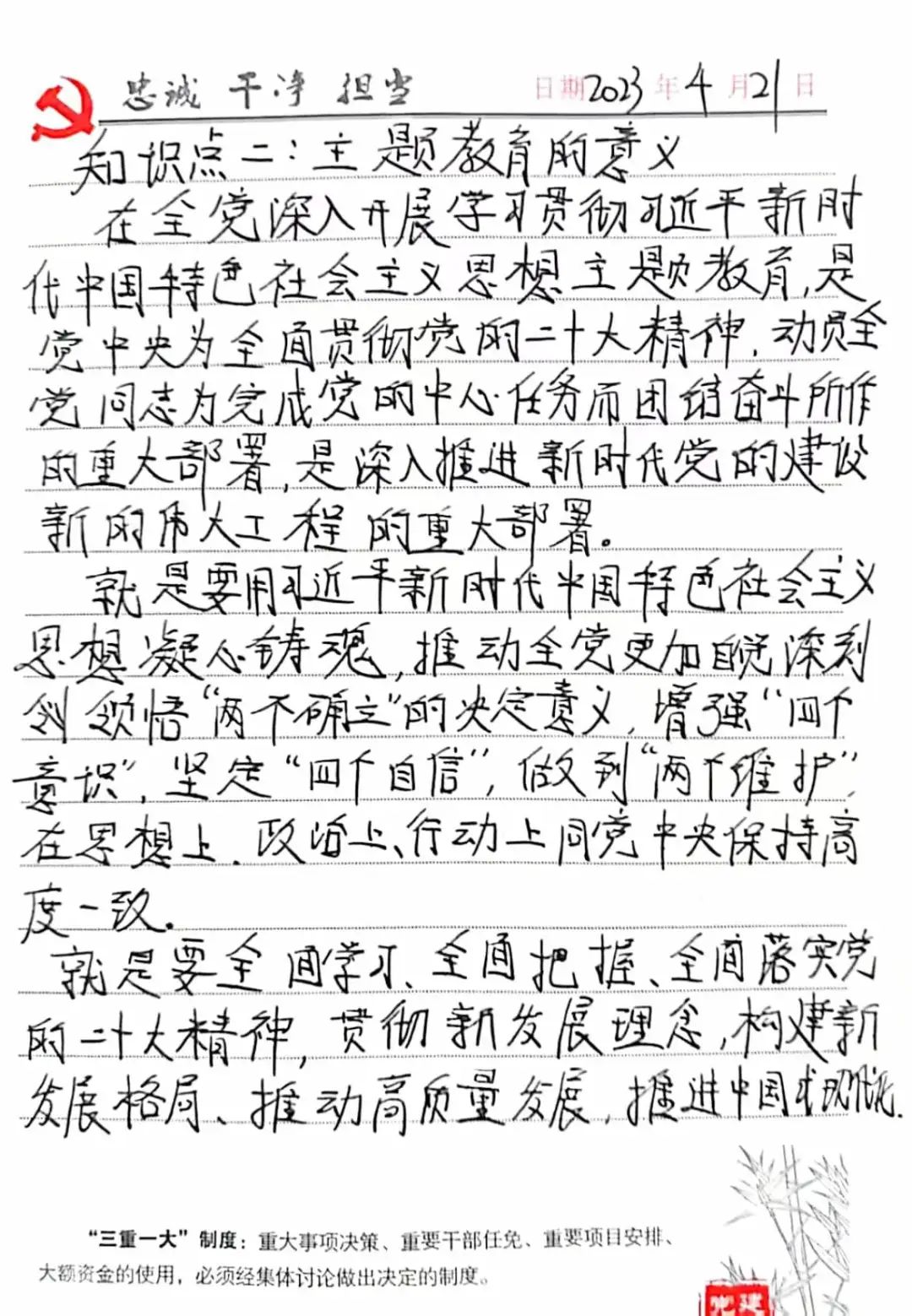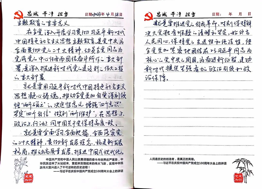 学院党委给各支部书记传达部署学习贯彻习近平新时代中国特色社会主义思想主题教育工作会议后,华体会平台本科生第一党支部于4月21日召开支部大会,要求全体党员认真学习贯彻习近平总书记重要讲话精神,按照上级党委的要求,精心组织实施,推动主题教育深入开展。要求每名党员要以强烈的政治责任感和历史使命感,矢志不渝、学思用贯通、知信行统一,做到“腹有诗书气自华”。