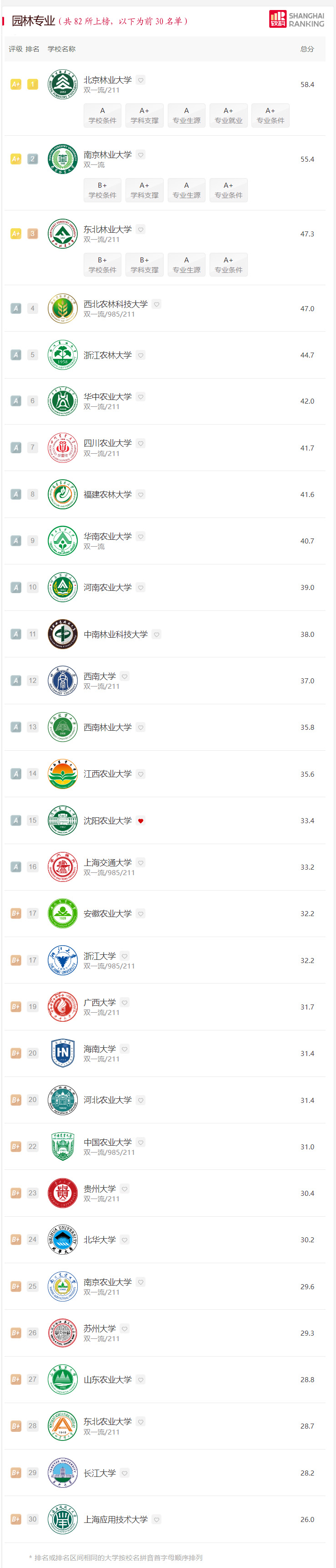 近日,软科发布2022年“中国大学专业排名”,华体会(中国)园林专业排名15(前9%)上升1位,评级保持A;风景园林专业排名50(前23%)评级B;林学专业排名17(前35%)评级B。