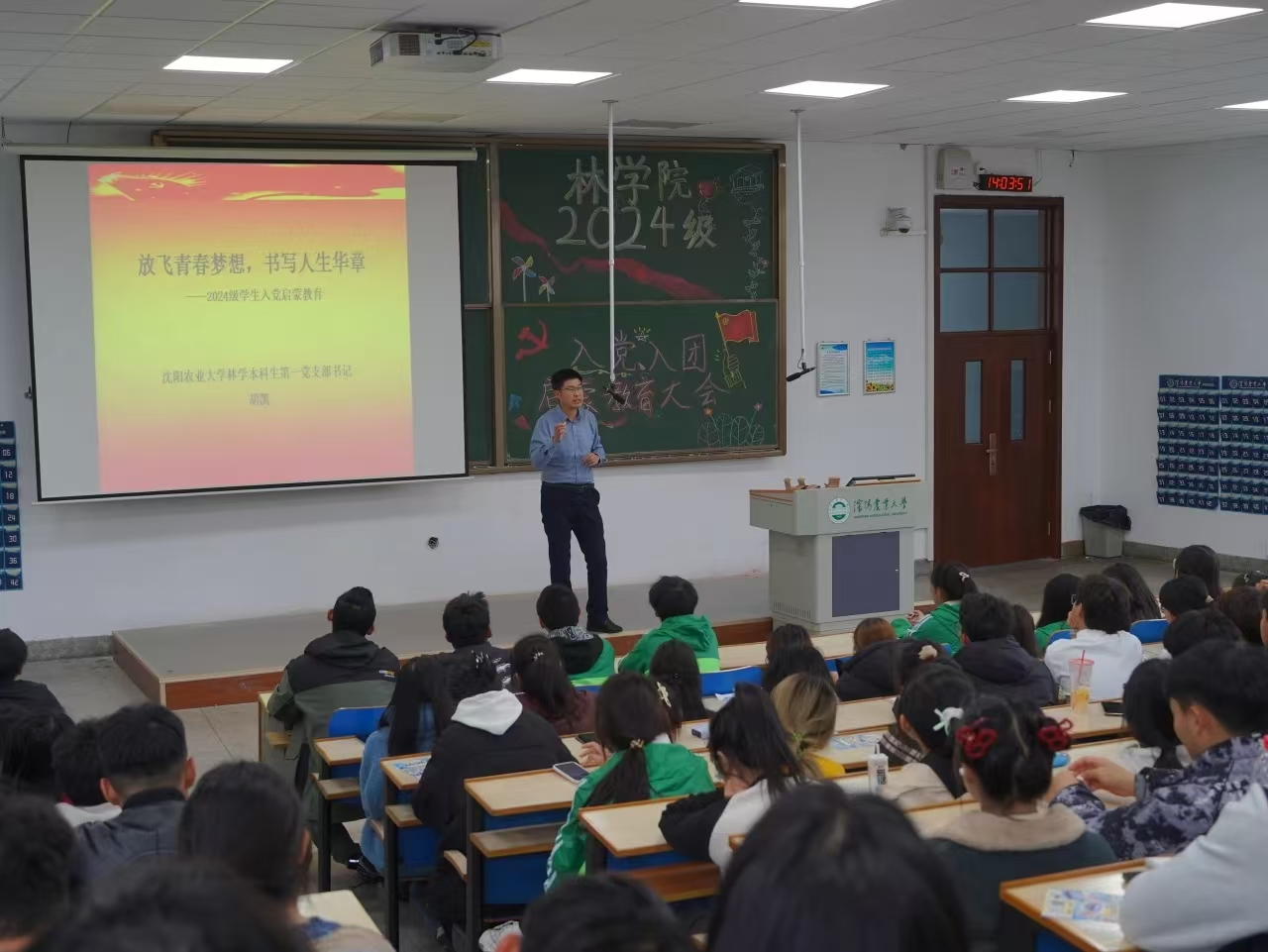 为传承红色基因,明确入党入团的意义,提升林院新生的思想政治素质以及组织归属感,10月30日下午,华体会(中国)于一教南区206举办了新生入党入团启蒙教育大会。华体会平台团委书记兼新生辅导员胡凯老师作为本次会议的主讲人,24级华体会平台全体新生参与会议。