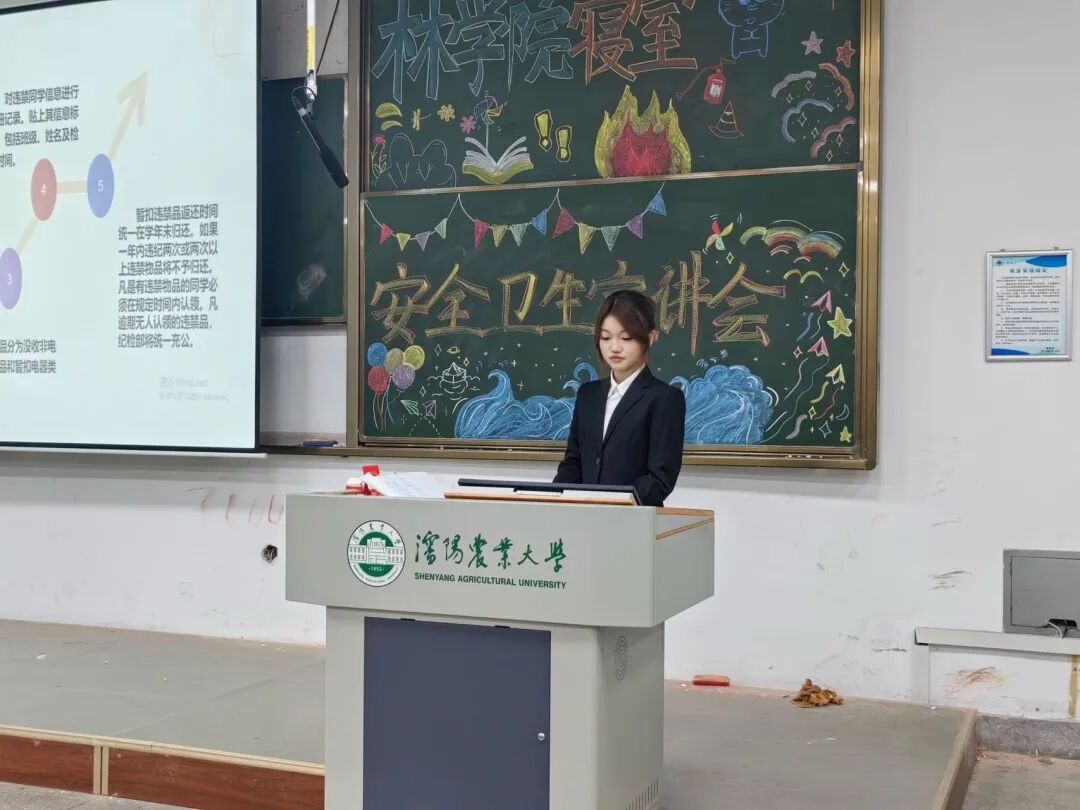 会上,纪检部部长郎一嬴围绕寝室安全管理明确纪律红线,包括严禁使用违规电器、禁止存放危险物品、严肃考勤与留宿制度等。