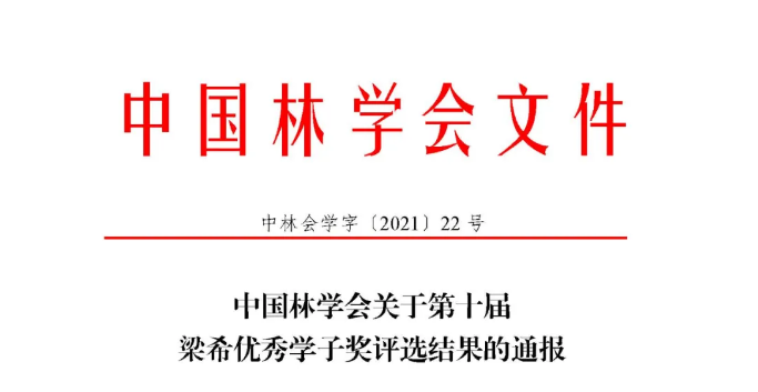 日前,中国林学会发布关于第十届梁希优秀学子奖评学结果的通报,华体会平台2018级林木遗传育种专业秦柏婷同学获评梁希优秀学子奖。