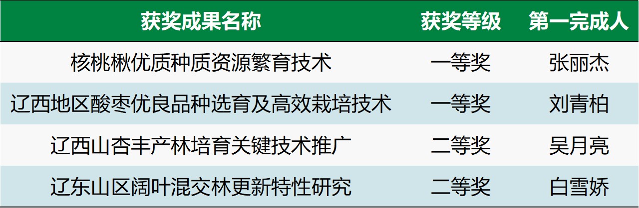 日前,辽宁省林学会公布了2022年辽宁林业科学技术奖获奖名单,华体会(中国)教师张丽杰、刘青柏作为第一完成人的2项成果荣获一等奖,吴月亮、白雪娇作为第一完成人的2项成果荣获二等奖。