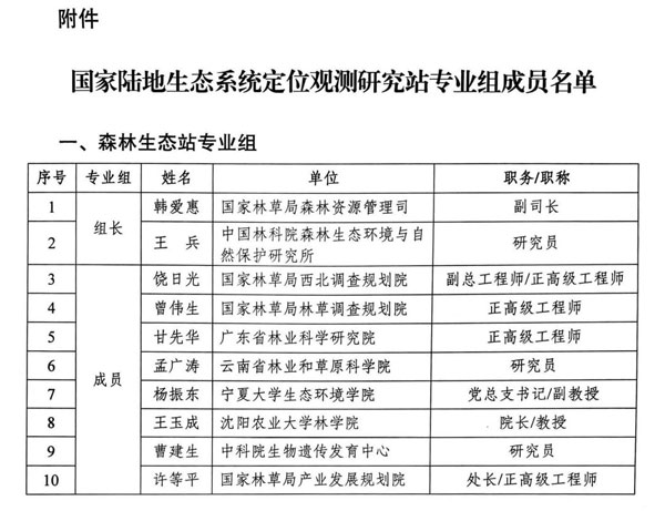 1月26日,在北京召开的国家林草局森林生态站专业组2023年度工作会议上,华体会(中国)院长王玉成教授获聘为国家陆地生态系统定位观测研究站专业组成员。国家林草局科技司李世东一级巡视员宣读了森林生态站专业组成员名单,并为专业组成员颁发聘书。