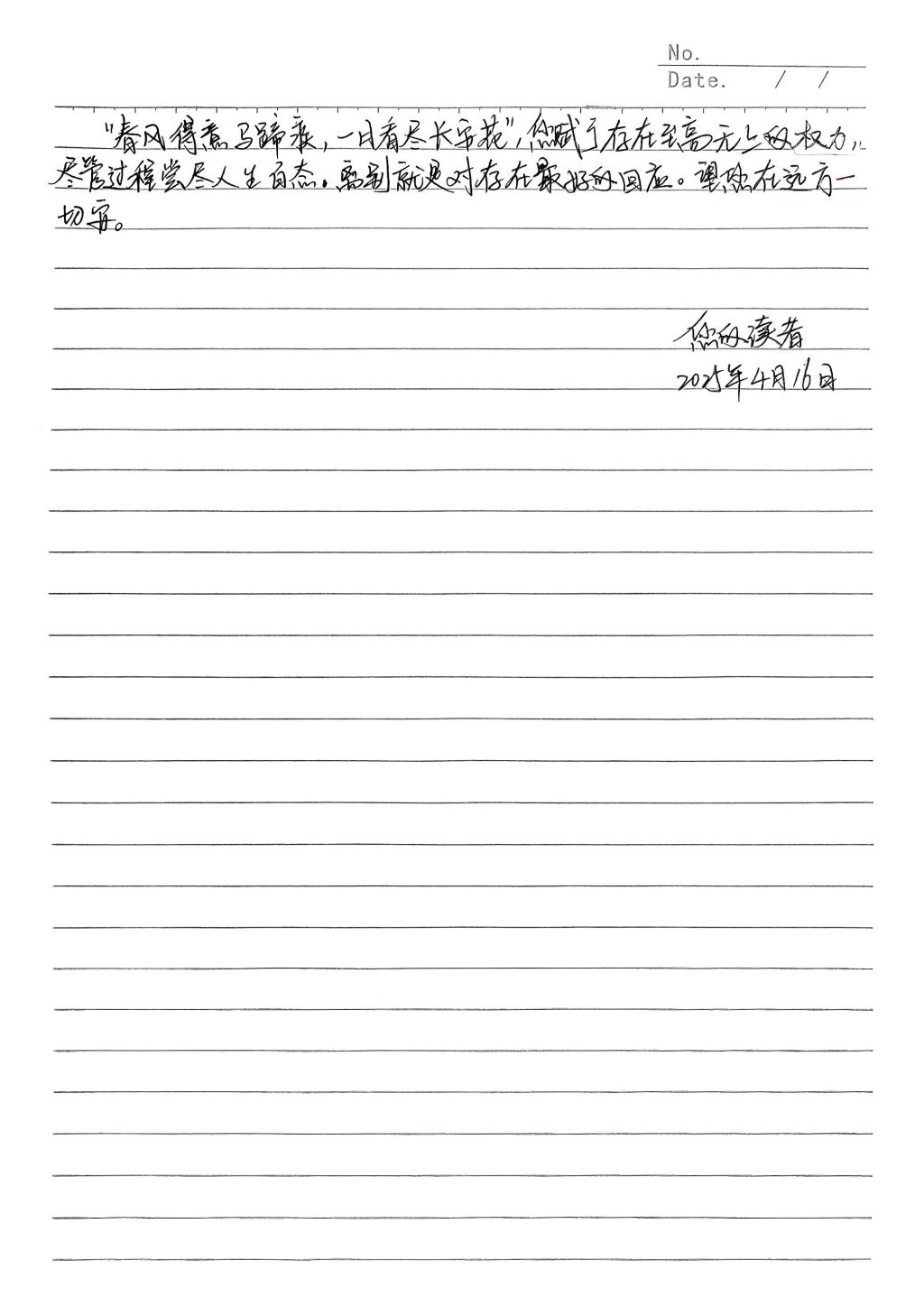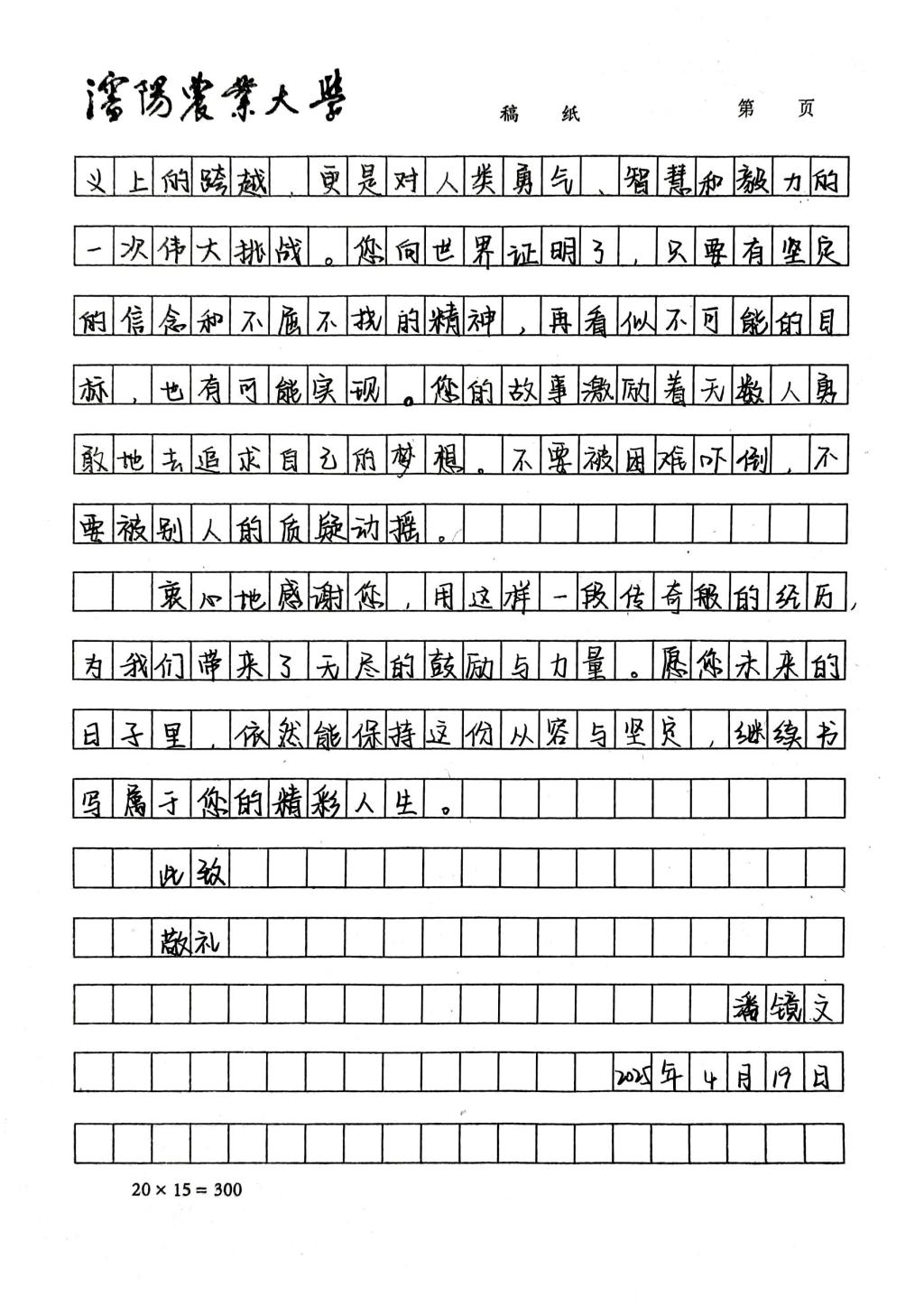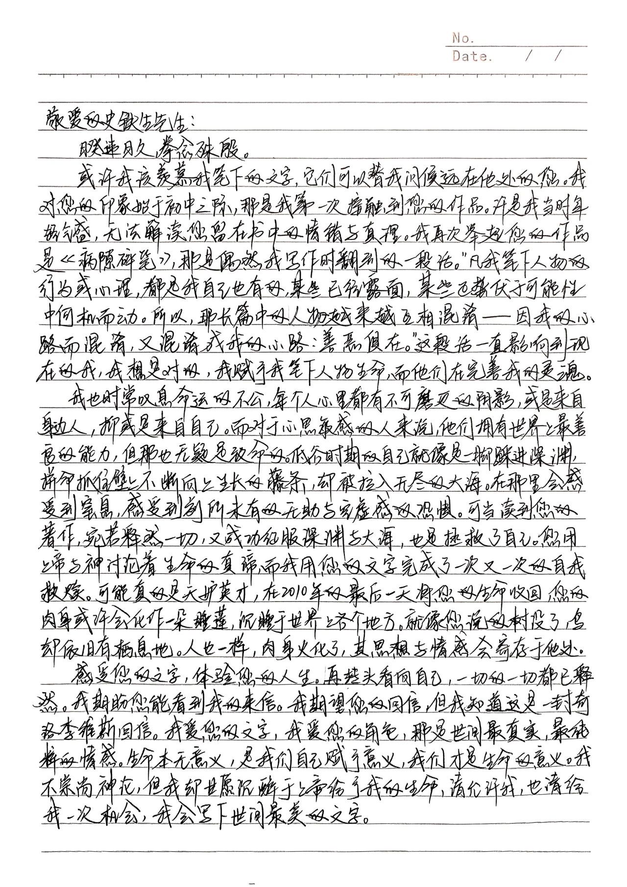为迎接第29个世界读书日,唤醒我们对读书美好的回忆与最初的热切,华体会(中国)成功举办“见字如晤”读书日活动,活动内容为给最喜欢的作者/书中人物写一封信,以第二人称带大家认识他、分享喜欢他的原因、说出最想对他说的话或表达自己的情感等。学生积极投稿,热情高涨,作品质量较高,现将优秀作品进行展示。