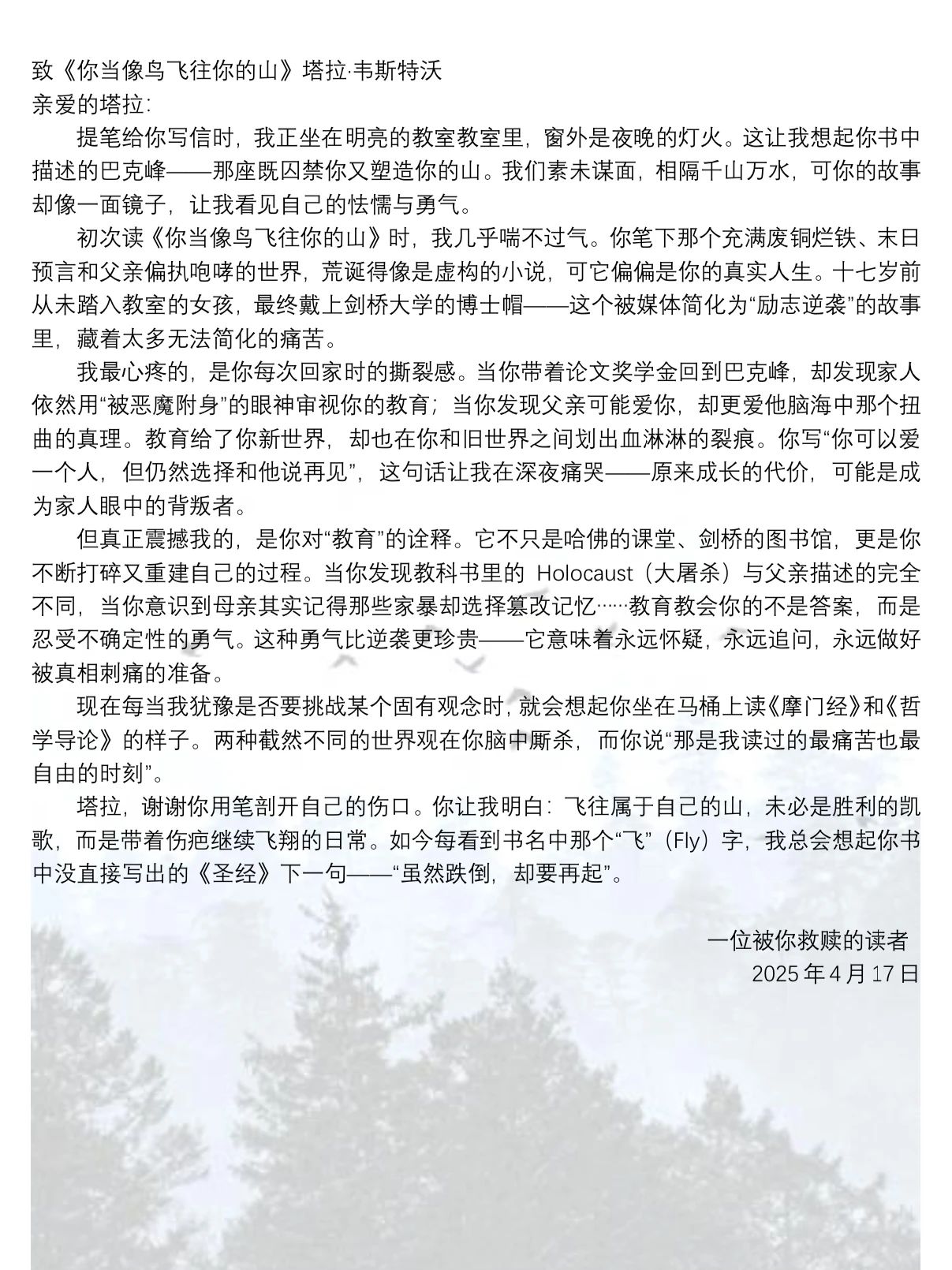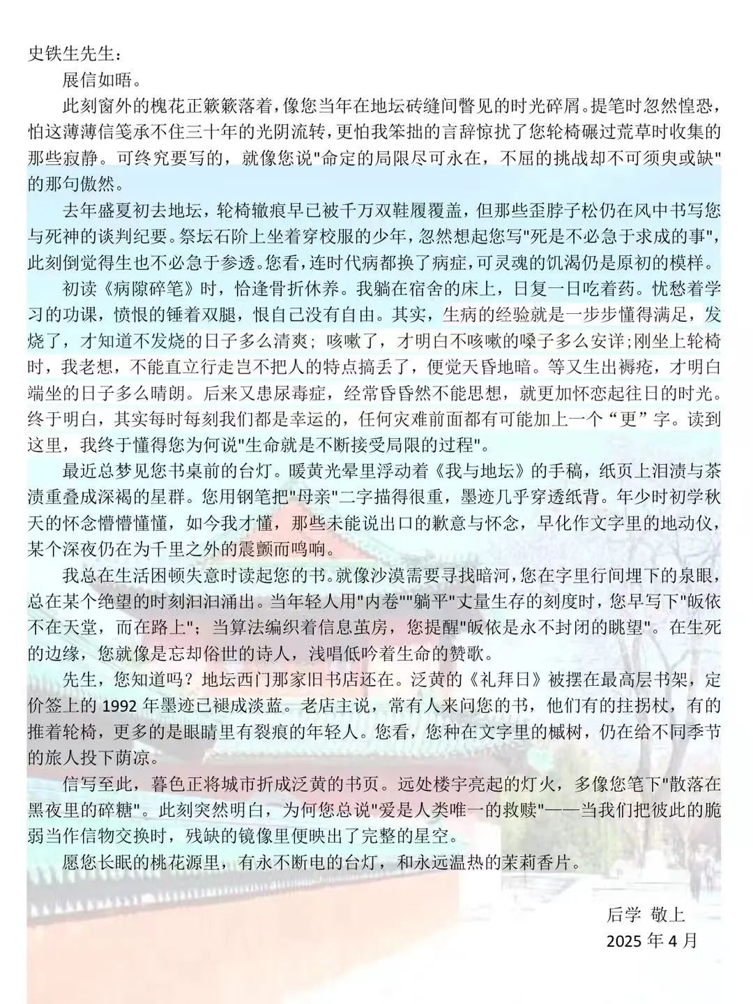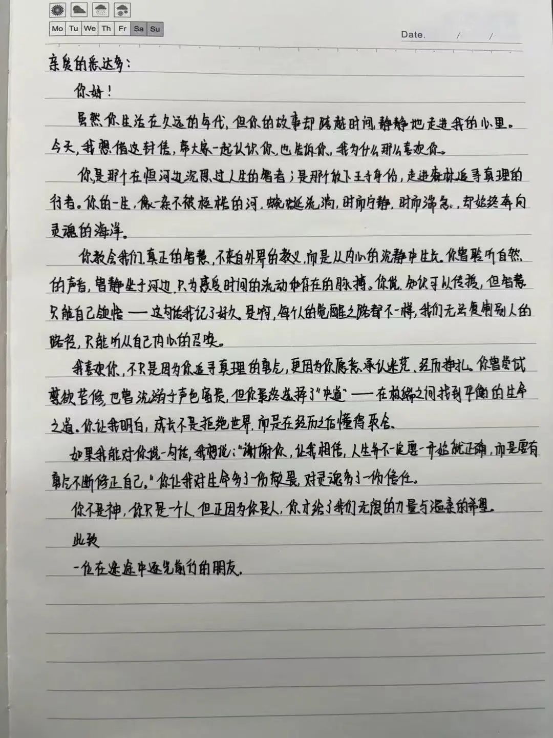 为迎接第29个世界读书日,唤醒我们对读书美好的回忆与最初的热切,华体会(中国)成功举办“见字如晤”读书日活动,活动内容为给最喜欢的作者/书中人物写一封信,以第二人称带大家认识他、分享喜欢他的原因、说出最想对他说的话或表达自己的情感等。学生积极投稿,热情高涨,作品质量较高,现将优秀作品进行展示。