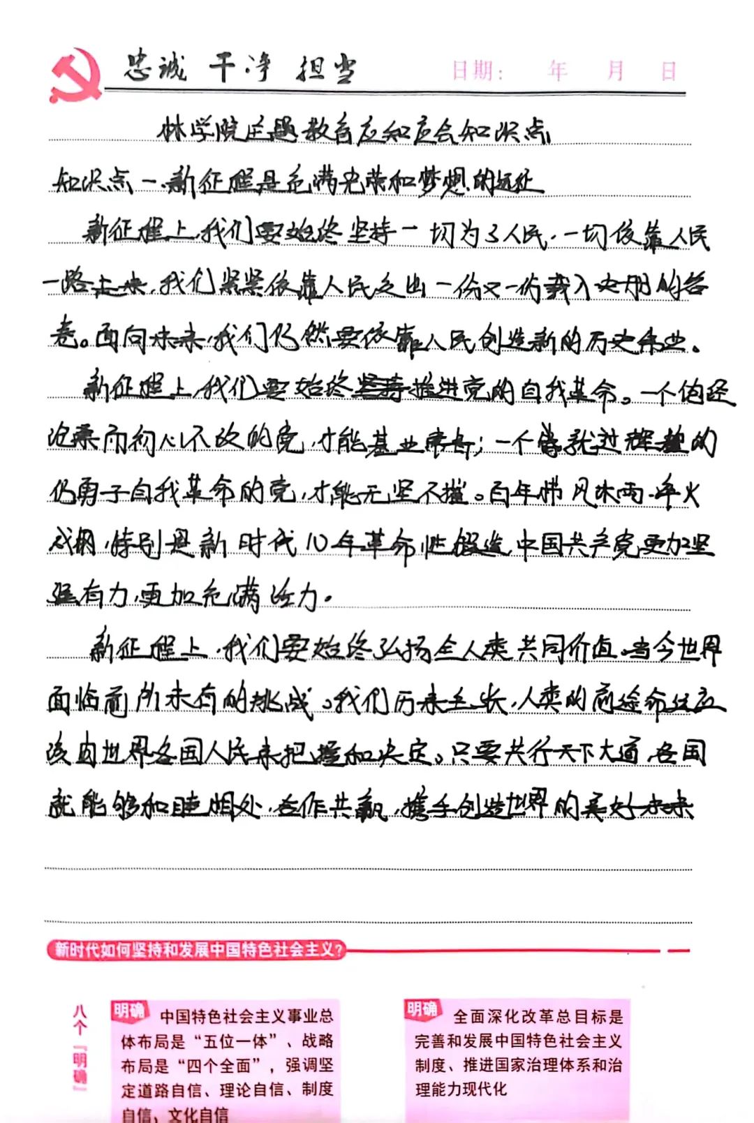 习近平总书记指出,新征程是充满光荣和梦想的远征。高校教师作为培养党的新鲜血液的重要力量,在推进党的建设中承担着重要职责。在新征程上,我们必须时刻坚守初心、彰显作为,以更饱满的热情、更昂扬的姿态,踏上充满光荣和梦想的远征,共同创造更加灿烂的明天,迎接更加美好的未来。
