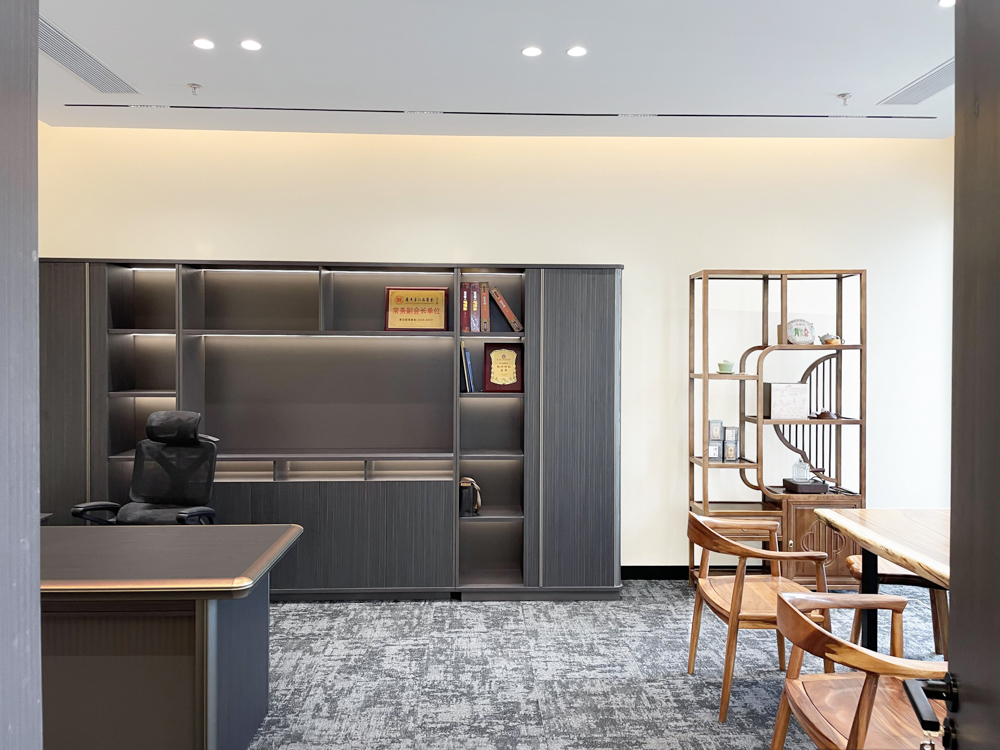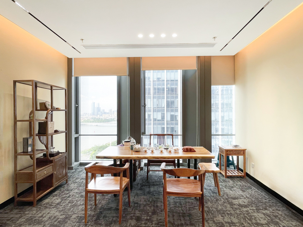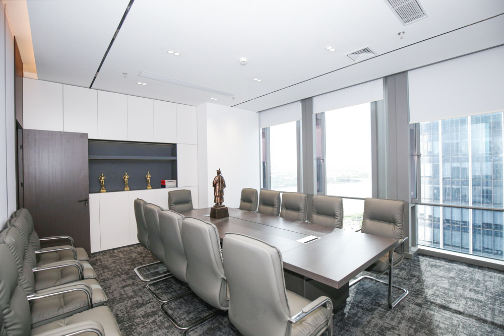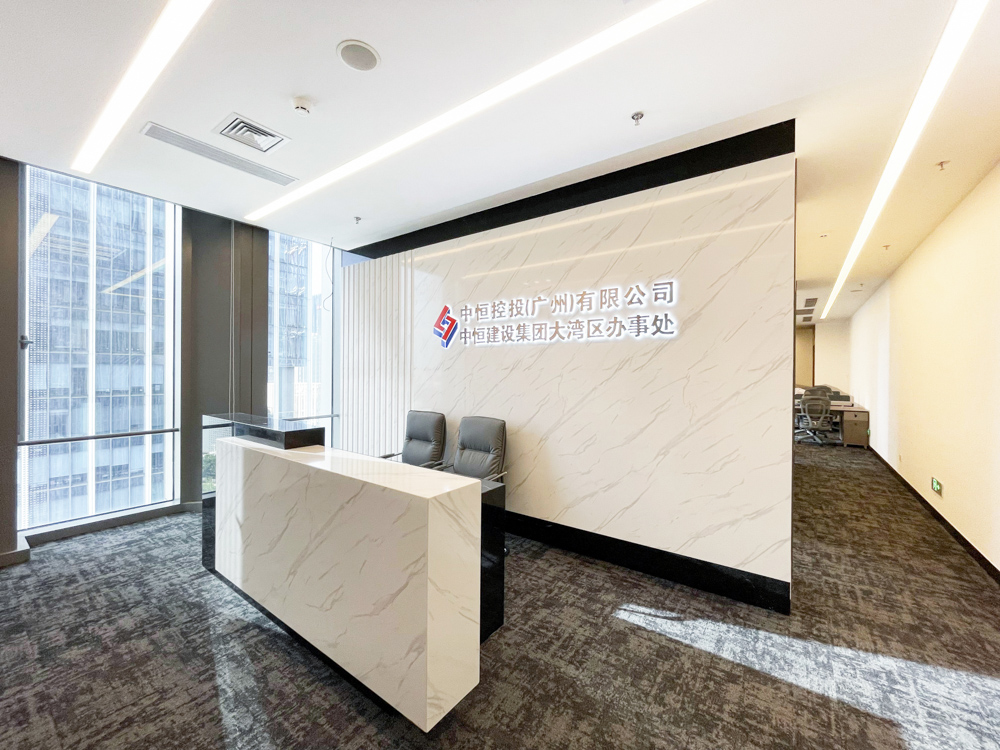 本案为中恒建设集团大湾区办事处的分部入驻海珠区琶洲广州国际航运大厦,其地理位置是琶洲中轴一线临江超甲级写字楼,是数智经济的核心片区。而现代办公室设计越来越注重人文与情感的融合,不仅有功能需求还要创造具有凝聚力的品牌形象与企业愿景。因此,利用得天独厚的地理位置,采用以美学理论作为空间的传达语言艺术,通过现代点、线、面、几何等多重元素延伸,打造现代化的办公室设计装修。