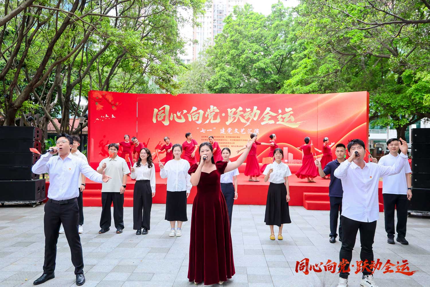为了庆祝中国共产党成立104周年,为深情回望党的光辉历程,热烈庆祝党的生日,弘扬爱国主义精神,天河南街道于 6 月 28 日下午,在天河大厦中心花园隆重举办“七一”党建文艺汇演活动。此次活动,华体会平台党支部有幸作为辖内非公有制企业代表参与其中,为这场红色盛会增添光彩。